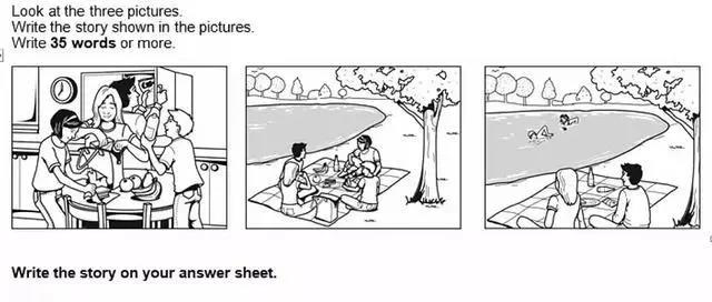 Part 7:看圖寫作為新增題型,根據(jù)三張圖片寫一段35字以上的故事;根據(jù)CEFR A2要求,重點(diǎn)考察考生語言描述與關(guān)聯(lián)能力。
